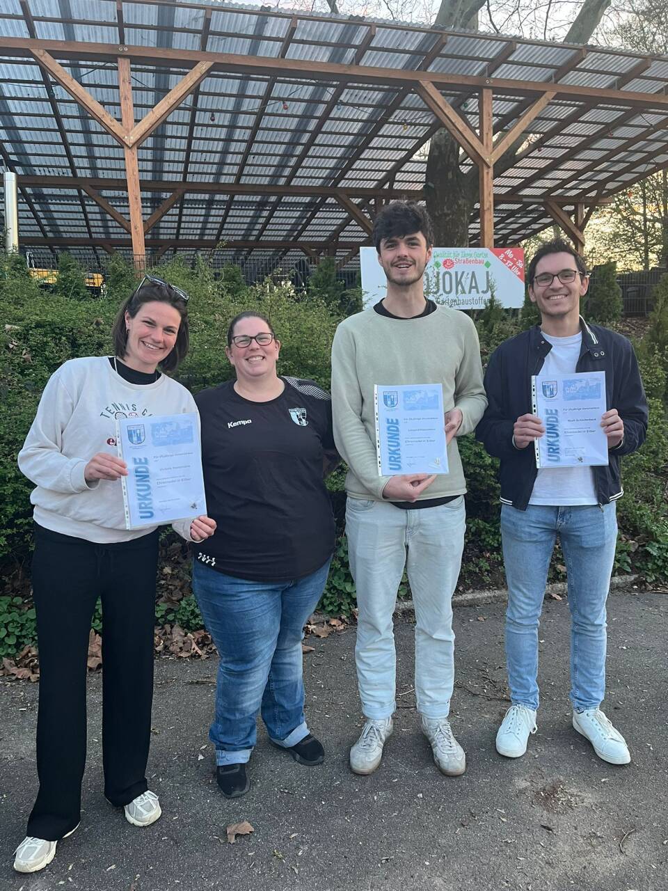 Persönlich vor Ort nahmen Victoria Heinzmann, Leopold Heinzmann und Noah Schlotterbeck ihre Urkunden entgegen. Ebenfalls seit einem Vierteljahrhundert mit dabei sind Hartmut Digel, Jörg Ebinger, Ute Heinlin und Bernd Heinlin.