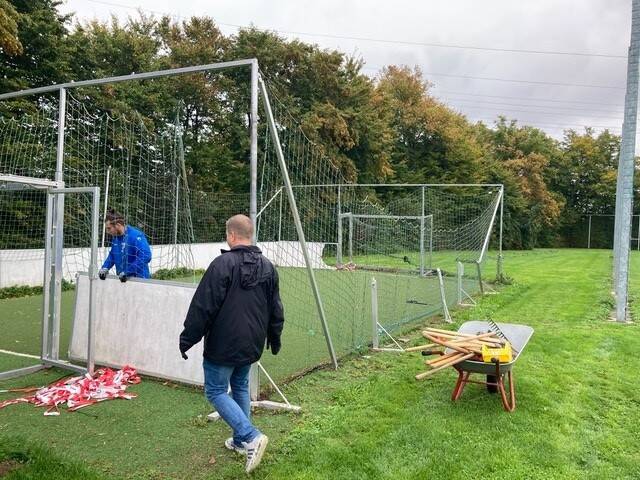 Vorbereitungsarbeit hat die Handball-Abteilung geleistet und ihre alten Handball-Tore entsorgt.