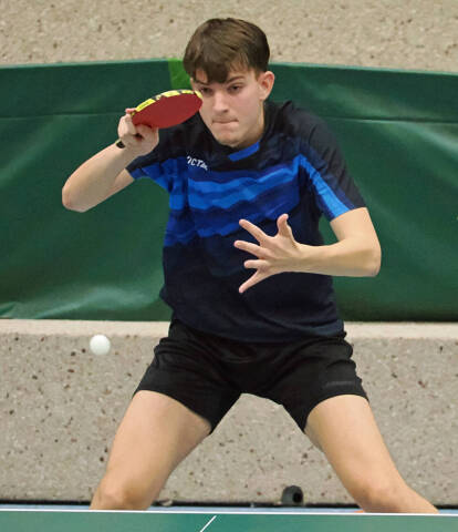 Auch Moritz Schmid war bei den Herren B etwas vom Pech verfolgt, denn er gewann ein Spiel mit 3:0, schied aber nach zwei 10:12-Niederlagen im Entscheidungssatz dennoch in der Gruppenphase aus. Serge Hillebrand spielte wie schon häufig in den letzten Wochen stark auf und wurde im Einzel nach knapper 2:3-Finalniederlage Zweiter. Im Doppel spielten er und Moritz groß auf und holten sich verdientermaßen den Bezirksmeistertitel.