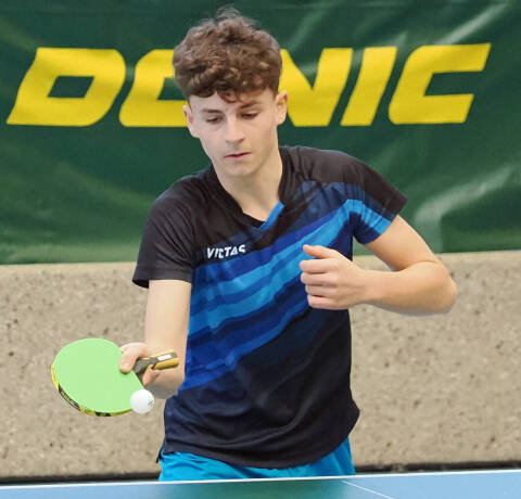 In der mit knapp 50 Teilnehmern unfassbar breit besetzten U19 spielten Jona Frank, Jonas Heyer, Ben Kemmler, Nicholas Krause, Noyan Müller-Sommer und Lasse Roewer um die begehrten Endranglistenplätze. Jona folgte weiter seinem Aufwärtstrend dieser Saison, besiegte viele Spieler, die stärker als er eintaxiert waren und holte sich einen sehr guten vierten Platz in seiner Gruppe. Jonas sammelte weitere Turniererfahrung und konnte eines seiner Einzel gewinnen, zeigt aber deutliche Fortschritte. Ben gewann alle Gruppenspiele und rang dabei auch den Favoriten Robin Kiesler mit 11:9 im fünften Satz in die Knie. 8:0 Punkte und die souveräne Qualifikation zeigen, dass Bens Trainingseifer sich mehr als auszahlt und er unser Jugendspieler der Stunde ist! Nicholas erwischte genau wie Jona einen guten Tag und duplizierte dessen Ergebnis. 5:3 Siege und Gruppenrang 4 gegen starke Konkurrenz sind aller Ehren wert. Noyan besiegte in seiner Gruppe alle Gegner, die schwächer als er eingestuft waren und kam mit ausgeglichener Bilanz von 4:4 auf Platz 5 in seiner Gruppe. Ein absolutes Kuriosum gab es für den stark aufspielenden Lasse, denn er war mit 5:2 Siegen hinter dem Erstplatzierten seiner Gruppe punktgleich mit zwei und satzgleich mit einem weiteren Spieler. Die eingegebenen Bälle ergaben, dass Lasse wegen eines einzigen gespielten Punktes die Nase vorn hatte und sich als Zweiter für die Endrangliste qualifizierte. Das Glück ist mit dem Tüchtigen!