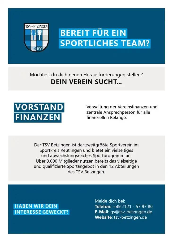 Zur Wahl steht das Amt des Vorstandes Referat Finanzen anlässlich unserer kommenden Jahreshauptversammlung am 08.05.2026.