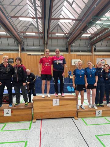 Eine wahre Medaillenflut gab es bei den Baden-Württembergischen Meisterschaften der Senioren und Seniorinnen in Laupheim. Mathias Ndhlovu schrammte bei den Senioren 45 an diesen Medaillen nach starken Spielen und drei Viertelfinal-Teilnahmen im Einzel, Doppel mit Björn Rogulka (TSV Dörzbach) und Mixed mit Ines Marquardt (TSV Burgstetten) noch knapp vorbei. Ingrid Reiner sicherte sich einen kompletten Medaillensatz mit Gold im Einzel bei den Seniorinnen 60, Silber im Doppel bei den Seniorinnen 50 mit Susanne Stösser (TTC Forchheim) und Bronze im Mixed mit Detlef Stickel (TTC Tuttlingen). Alexandra Schankula steht nicht so auf verschiedene Farben und holte sich deshalb bei den Seniorinnen 40 direkt drei goldene Exemplare in allen Kategorien. Dabei wurde sie ihrer Favoritenrolle mehr als gerecht und siegte im Einzel, im Doppel mit Natalie Weichel und im Mixed mit Frank Elseberg (SSV Ulm) ohne jeglichen Satzverlust. Natalie selbst spielte ebenfalls herausragend und wurde zusätzlich zum Doppel-Erfolg sowohl im Einzel, wo sie nur gegen Alex unterlag, als auch im Mixed an der Seite von Markus Brodbeck Vizemeisterin. Ebenso am Start und natürlich auch auf dem Podium war unsere langjährige Trainingspartnerin Simone Nagel, die bei den Seniorinnen 45 im Doppel mit Ines Marquardt den dritten Platz erreichte und anschließend im Einzel-Halbfinale knapp gegen ihre Doppelpartnerin gewann, um sich in einem abschließenden Endspiel-Krimi den Einzeltitel zu sichern.