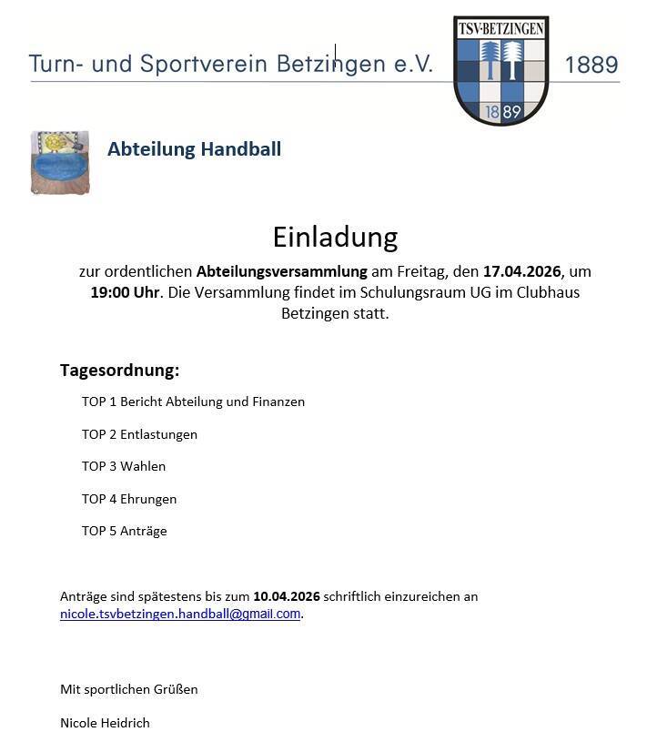 Einladung zur Abteilungsversammlung Handball